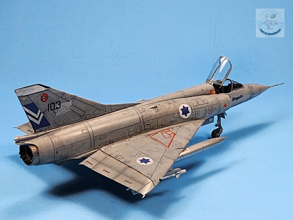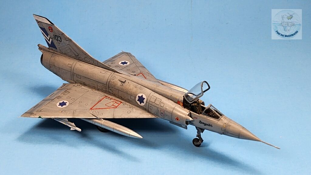 I decide to build this 1/72 scale model of the Mirage IIICJ in its final Ghost Grey livery from 1981. The battle-worn veteran is shown here, streaky with oil and grease from long use, but still as deadly as ever in its fight to defend the Galilee and the Israeli positions at the Golan Heights. While the color guide shows a tow tone Dark Ghost Grey and Light Ghost Grey, reference photographs from 253 Squadron seem to show a more uniform grey finish. This may be a photo lighting effect, or the bleaching of the grey shades under the sun may have turned them into a seemingly uniform light grey of sorts.