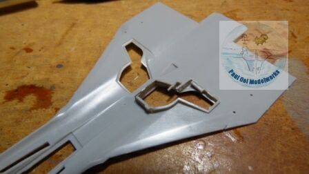 The rear stabilizer is a butt fit with very little guide for attachment, so careful alignment is necessary. There is a long seamline on the starboard side that i had to fill using the technique from Tutorial 3.