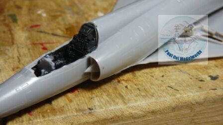 The last step is to attach the main canopy in its open position to allow a good view of the highly detailed cockpit.