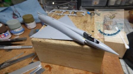 The fuselage fit is reasonably good, but it does require careful alignment and getting the very tight cockpit section to fit. The fuselage halves are not very rigid as there is a cavernous void in the middle which will only firm up once the delta wing sections are fitted.
